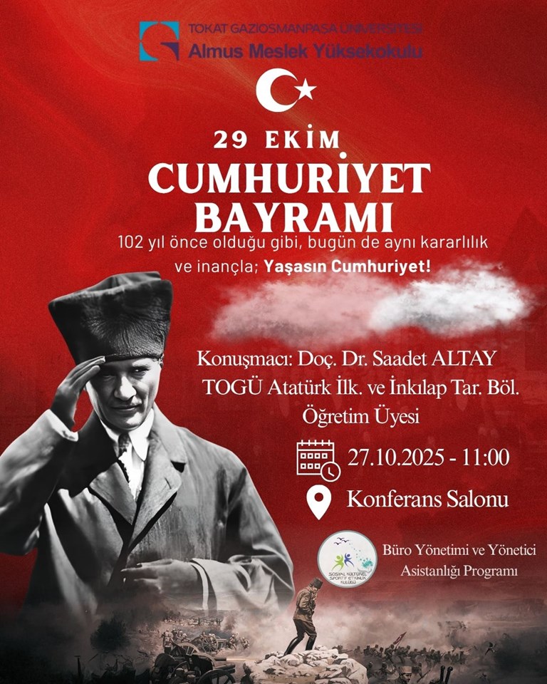 Meslek Yüksekokulumuzda 27.10.2025 tarihinde saat 11.00'da 29 Ekim Cumhuriyet Bayramı programı düzenlenecektir.