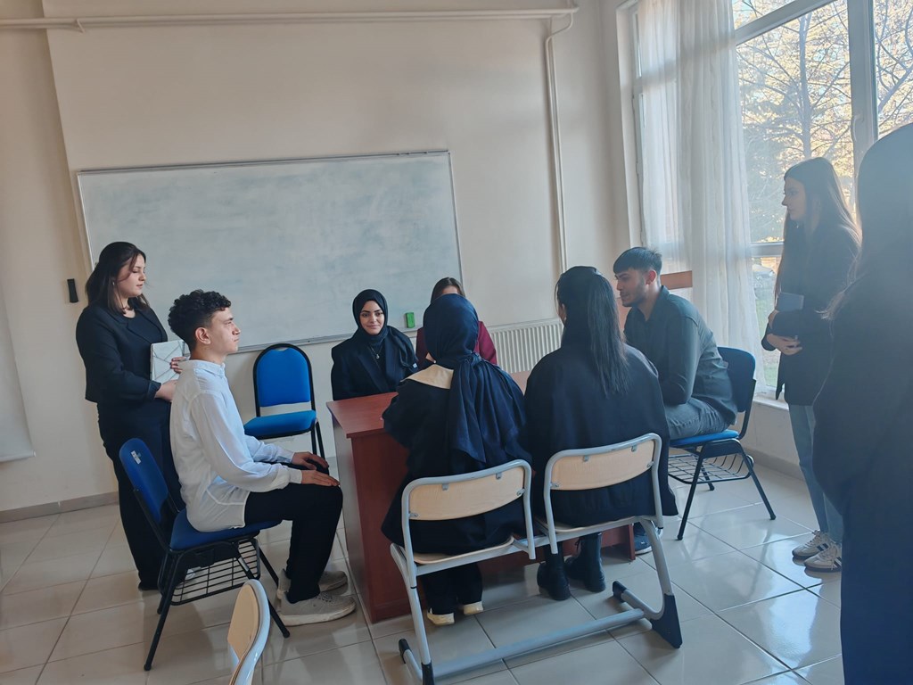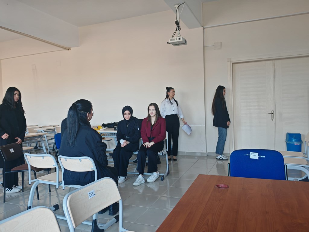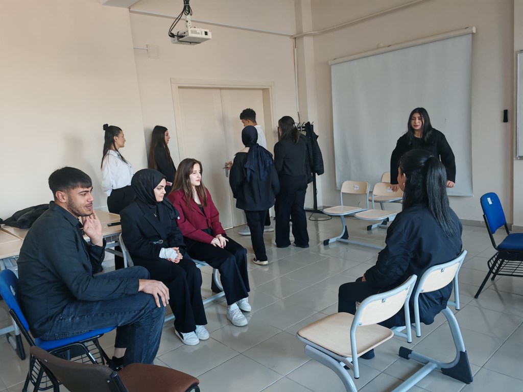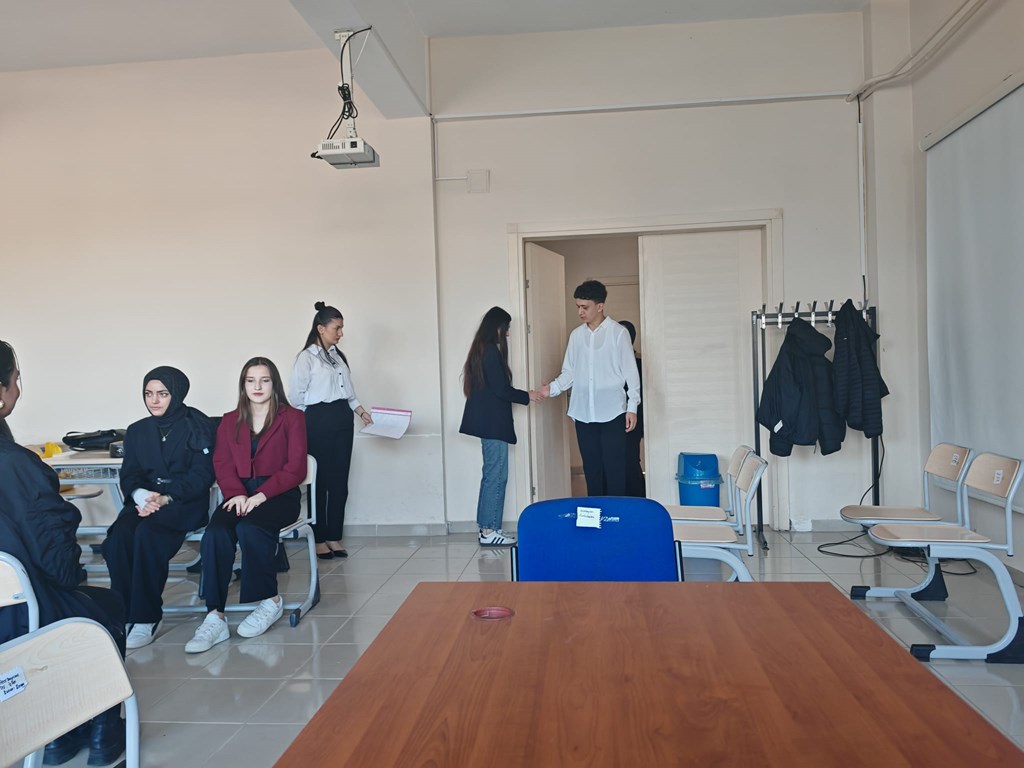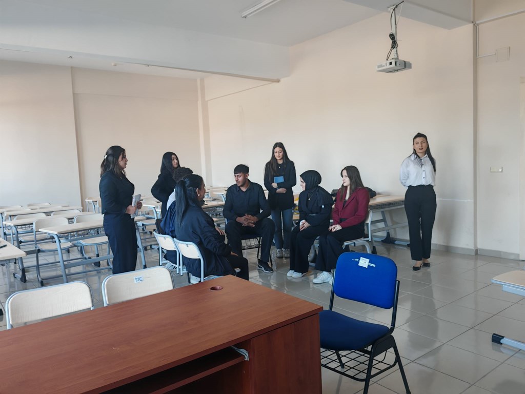 Büro Hizmetleri ve Sekreterlik Bölümü 1. sınıf öğrencileri Protokol ve Sosyal Davranış Kuralları dersi kapsamında telefon konuşması, selamlama, uğurlama, taşıt protokolü, davet protokolü, hediyeleşme gibi konularını ele alan küçük senaryolar hazırlayarak uygulama yapmıştır.